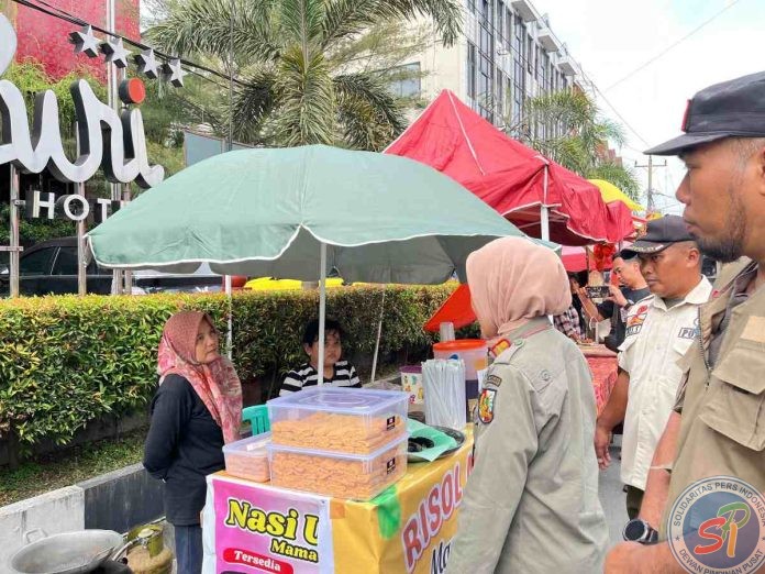 “Kami tidak melarang untuk berjualan, tapi berjualan lah di lokasi seharusnya. Jangan sampai di bahu jalan seperti ini,” tegas Kepala Satpol PP Kota Pekanbaru, Yuliarso.